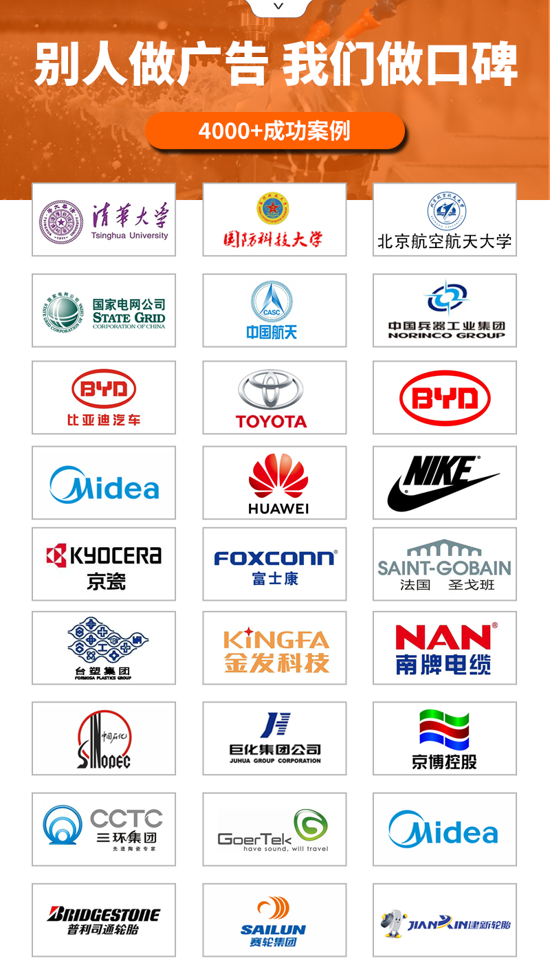 多年來公司已成功服務(wù)國內(nèi)外眾多中高端客戶,如:京瓷、比亞迪、美的、金發(fā)科技、歌爾聲學(xué)、潮州三環(huán)、中國科學(xué)院、清華大學(xué)、上海大學(xué)、國防科技大學(xué)、華南理工等企業(yè),利拿為他們提供了值得信賴的設(shè)備與服務(wù),建立了良好的合作關(guān)系。